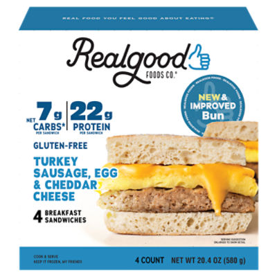 Realgood Turkey Sausage Egg Cheddar Cheese Breakfast Sandwiches